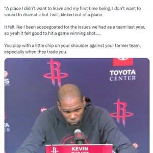 相信大家都看了杜兰特绝杀太阳赛后的采访,KD吐露了对前东家的不满,他很难受的说道:太阳原本是我最不愿离开的地方,我不想让...